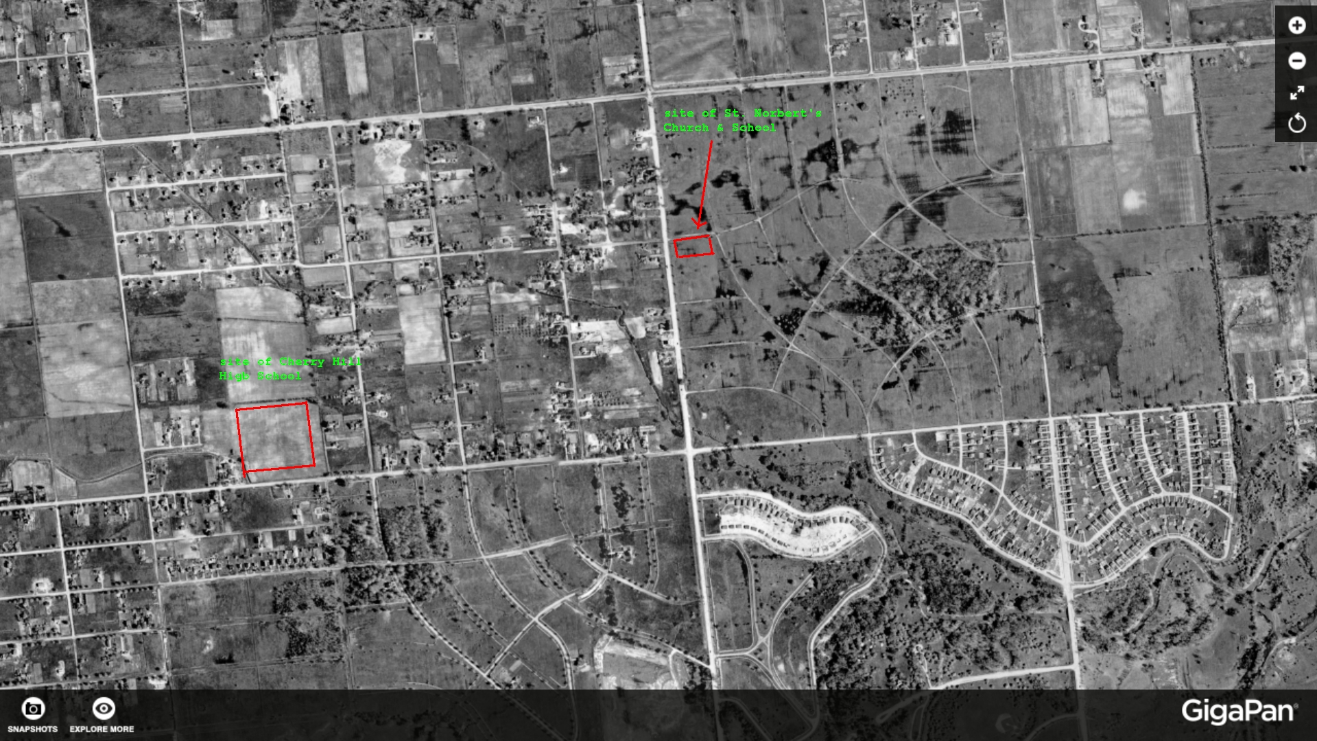 Aerial photo of the sites of St. Norbert Parish and Cherry Hill High School