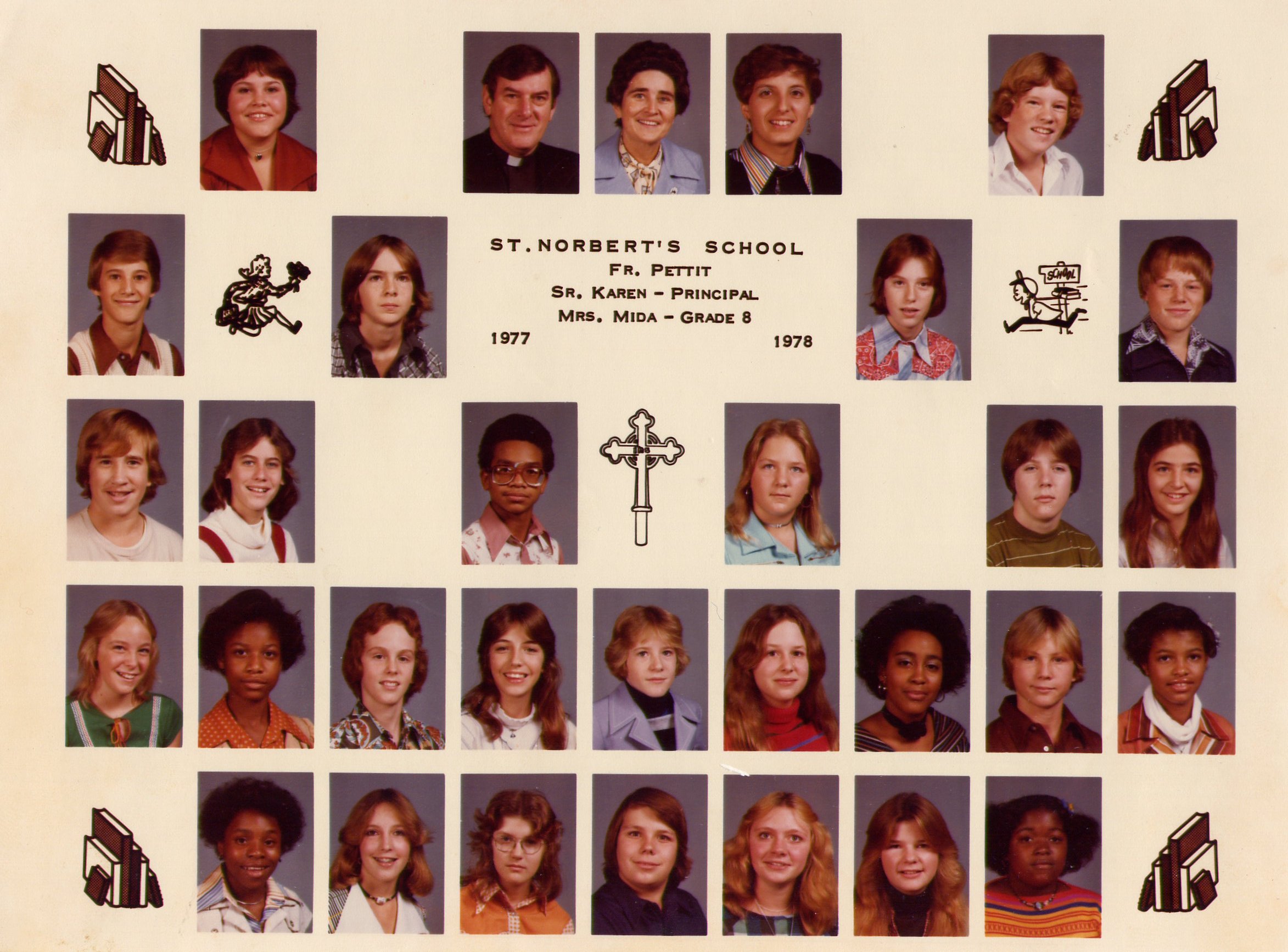 Row 1: Denise Deel, Fr. Pettit, Sr. Karen, Mrs. Mida, Jeff Bowlds Row 2: Steve Allard, Phil LaBranche, Regina Carrico, Mike Crowley Row 3: Bob Skibinski, Theresa Hardoin, David Thompson, Dawn Przytula,Gary Heddle, Jennifer Wilson Row 4: Denise Kaltz, Kathy Henderson, Pat Foote, Trisha Watson, Jim O'Hara, Kathy Byczek, Parilee Conerly, Tom Middendorf, DeWita Fulton Row 5: Shawna Dortch, Debbie Krupinski, Jane Tscherne, John McGraw, Donna McKay, Julie Lackey, Leatrice Thompson Not pictured: John Klink, Joe Thompson, Lynn McLaughlin |